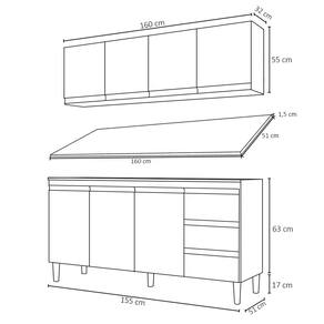 Conteúdo da Embalagem: 1 Armário aéreo, 1 Balcão, 1 Tampo.