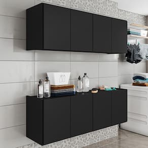 Armário Aéreo e Balcão Para Lavanderia 118cm Monna Preto Z34 - Mpozenato