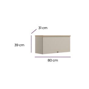 Características: 1 Porta basculante com pistão à gás Dobradiças metálicas Estrutura 100 em MDF 15mm Peso total suportado 8kg Puxadores em Alumínio Sistema de montagem cavilhas, parafusos e minifix