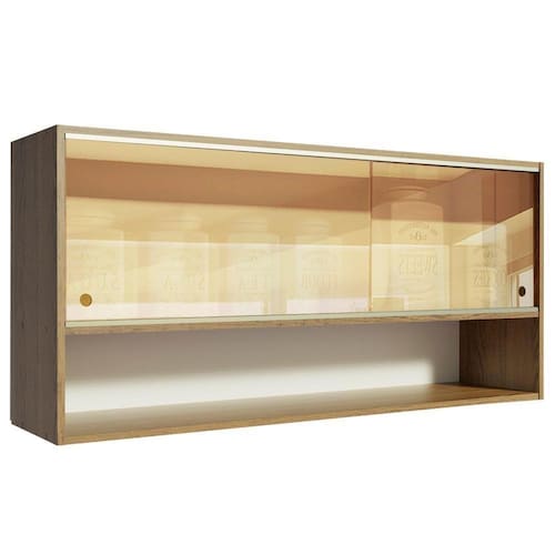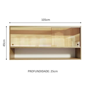 - Itens inclusos: Um (1) Armário aéreo de 49cm de altura x 105cm de largura x 25cm de profundidade com duas (2) portas em vidro, dois (2) nichos internos e um (1) nicho maior aberto