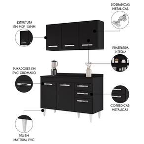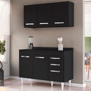 É preciso estar atento na hora de escolher o móvel que vai compor o ambiente, afinal com cozinhas cada vez menores ele deve ser compacto e funcional, assim como o Armário Aéreo Honduras e Balcão Gabinete com Tampo 120cm Suécia Preto, da Lumil.