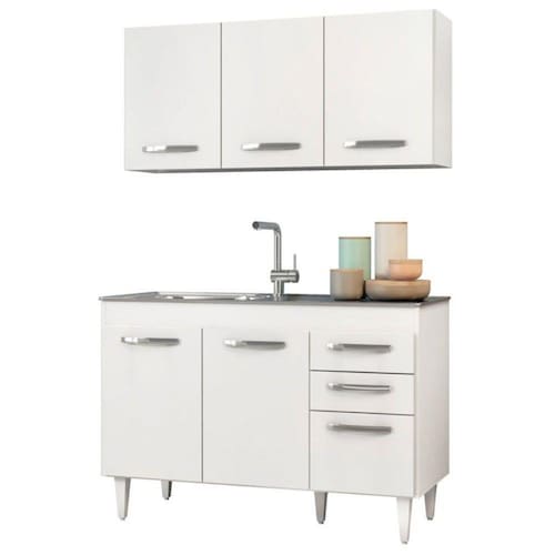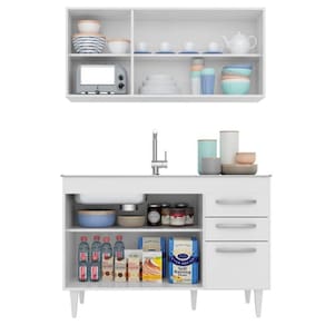 Armário Aéreo Honduras e Balcão Gabinete de Pia Suécia 120cm Branco, excelente para compor sua cozinha e organizar seus utensílios. Estrutura em MDP/MDF com revestimento em BP resultando em um acabamento resistente, 06 portas, 02 gavetas e pés reguláveis que facilitam a posição do móvel. Confira e leve já!