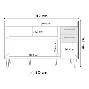 Dimensão: (Largura x Altura x Profundidade) Dimensões do Aéreo: 120 x 54 x 29 cm Dimensões do Balcão: 117 x 83 x 50 cm
