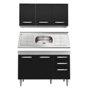 compacto e funcional, assim como o Armário Aéreo Honduras e Balcão Gabinete Suécia com Pia Inox 120cm, da Lumil Móveis. Tanto o Balcão quanto o Armário Aéreo medem 120cm e juntos somam o total 6 portas e 2 gavetas, oferecendo todo espaço necessário para organizar seus utensílios.