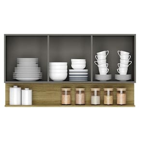 Armário Aéreo Line 3 Portas 120 cm Gris Freijó - Kits Paraná