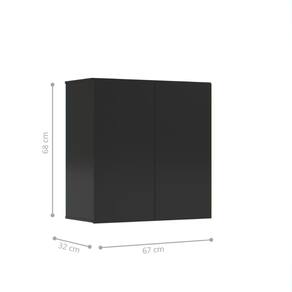 O Armário de Cozinha Aéreo 2 Portas Preto será um verdadeiro parceiro no seu espaço culinário. Dimensões do produto montado: Altura: 68 cm Largura: 67 cm Profundidade: 32 cm Características: - Material MDP - Cor preto - Prateleira - Porta Itens Incluso: 01 Armário. Kit completo para montagem. Manual de montagem. Observações: - Não nos responsabilizamos pela montagem do produto. - Sistema de Montagem: Parafusos, Cavilhas e Tampos. - É recomendado que a montagem seja feita por um profissional qualificado. - As imagens indicam uma sugestão de uso e são apenas ilustrativas, os objetos decorativos não estão inclusos. - Ao iniciar a montagem, forre o chão com o papelão das embalagens para proteger as peças de arranhões. Instruções e Cuidados: Limpar com pano seco, manter em lugar livre de umidade, ao abrigo de exposição direta ao sol.