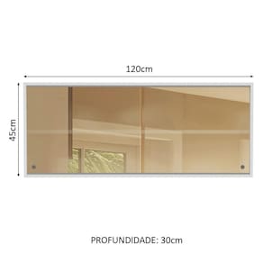 - Um (1) Armário Aéreo com 45 cm de altura x 120 cm de largura x 30 cm de profundidade com duas (2) portas em vidro reflex e duas (2) prateleiras internas.