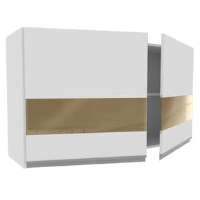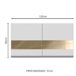 - Um (1) Armário Aéreo de 66 cm de altura x 120 cm de largura x 31 cm de profundidade com duas (2) portas com detalhe em vidro reflex e duas (2) prateleiras internas