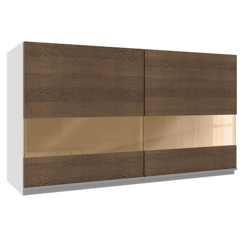 - Um (1) Armário Aéreo de 66 cm de altura x 120 cm de largura x 31 cm de profundidade com duas (2) portas com detalhe em vidro reflex e duas (2) prateleiras internas