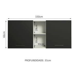 Possui duas portas e dois nichos abertos centrais. Com largura de 150 cm, é a opção perfeita para organizar todos os utensílios, louças e mantimentos da sua cozinha.