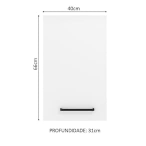 - Um (1) Armário Aéreo de 66 cm de altura x 40 cm de largura x 31 cm de profundidade com uma (1) porta e uma (1) prateleira interna