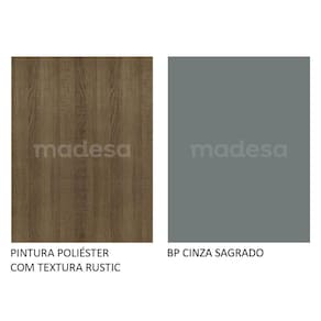 O acabamento da estrutura é no padrão amadeirado Rustic e a parte interna das costas é branca. A porta é cinza. O processo é feito com a