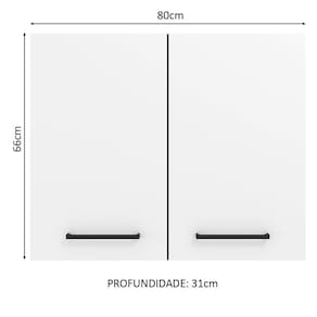 - Um (1) Armário Aéreo com 66 cm de altura x 80 cm de largura x 31 cm de profundidade com duas (2) portas