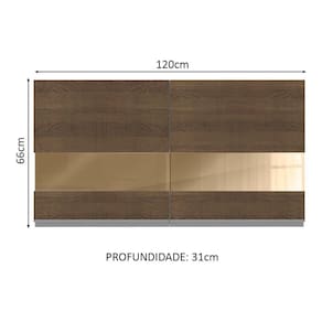 - Um (1) Armário Aéreo de 66 cm de altura x 120 cm de largura x 31 cm de profundidade com duas (2) portascom detalhe em vidro reflex e duas (2) prateleiras internas.