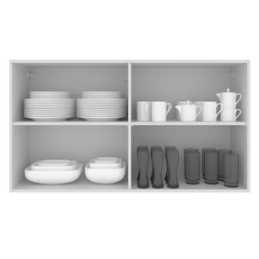 Conta com duas portas convencionais com puxadores em alumínio e dobradiças metálicas com amortecimento para o fechamento suave. O espaço interno é bem dividido em quatro compartimentos para organizar utensílios, louças, mantimentos e o que mais você preferir.