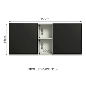 Possui duas portas e dois nichos abertos centrais. Com largura de 150 cm, é a opção perfeita para organizar todos os utensílios, louças e mantimentos da sua cozinha.