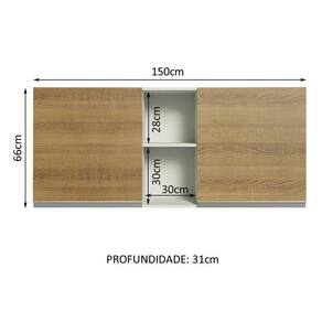Possui duas portas e dois nichos abertos centrais. Com largura de 150 cm, é a opção perfeita para organizar todos os utensílios, louças e mantimentos da sua cozinha.