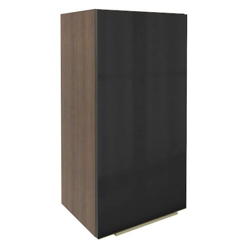 O acabamento da estrutura interna e externa é no padrão amadeirado Rustic. A porta possui pintura preta. O processo é feito em Poliéster ecológico, que protege o móvel contra os efeitos da água e do calor.