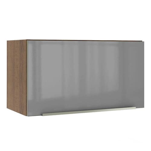 Este Armário Aéreo de 60 cm da linha Lux da Madesa possui uma porta basculante que recebe um vidro cinza aplicado, muito bonito e sofisticado. É desenvolvido com materiais de alta qualidade, como puxadores em alumínio e dobradiças metálicas.