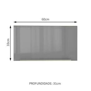 Este Armário Aéreo de 60cm da linha Lux da Madesa possui uma porta basculante que recebe um vidro cinza aplicado, muito bonito e sofisticado. É desenvolvido com materiais de alta qualidade, como puxadores em alumínio e dobradiças metálicas.