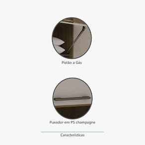 Caracteristicas: Estrutura: 100 MDP Acabamento: PF Quantidade de Portas: 2 Tipo de Dobradicas: Metalica Reforcada Tipo de Puxador: Plastico PS Champagne Sistema de Montagem: Cavilhas, Parafusos e Minifix Itens Inclusos: 1 Armario Aereo, Kit ferragens e Manual de Montagem. Garantia: 3 meses