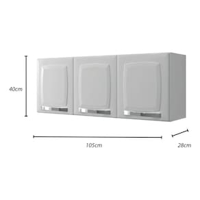 INFORMAÇÕES TECNICAS: Material da Estrutura: Aço Revestimento: Pintura Eletrostática a pó de alto brilho e resistência Quantidade de Portas: 3 Quantidade de Puxadores: 3 Material dos puxadores: Perfil metálico e ponteiras em ABS, revestidos com acabamento cromado Quantidade de prateleiras: 1 Quantidade de dobradiças: 6 Escala de Brilho: Semibrilho Tipo de porta: Bater