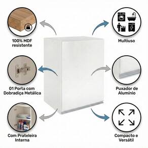 Com design clean e versátil, pode ser utilizado em diversos ambientes, como cozinha, lavanderia, área de serviço, quarto, escritório ou despensa, adaptando-se facilmente às necessidades do dia a dia.