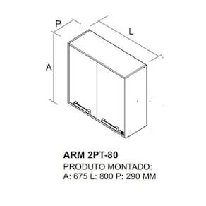 Características: - 02 Portas - Dobradiça metálica de 26mm - Puxadores em plático ABS