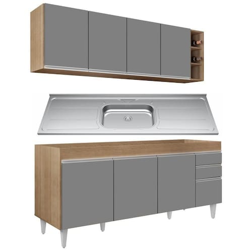 Conteúdo da Embalagem: 1 Balcão, 1 Pia,1 Armário Aéreo, 1 Nicho.