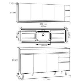 Conteúdo da Embalagem: 1 Balcão, 1 Pia,1 Armário Aéreo, 1 Nicho.