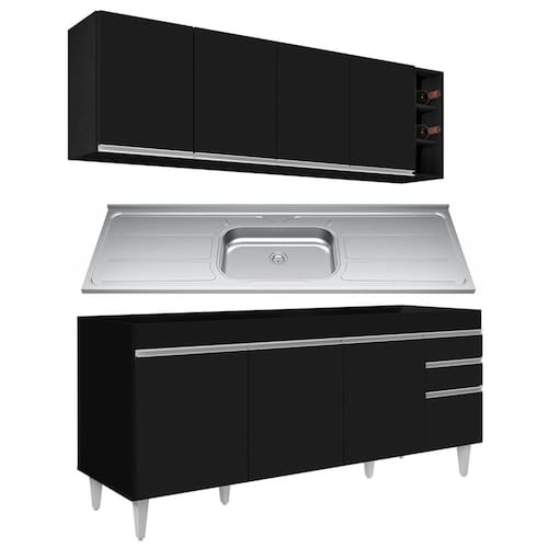 Conteúdo da Embalagem: 1 Balcão, 1 Pia,1 Armário Aéreo, 1 Nicho.