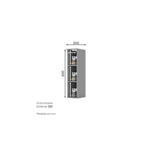 FICHA TÉCNICA: Acabamento: Pintura UV Texturizada Cor Interna: Na versão Branco HP é Trama Branco e na versão Cinza é Trama Escala de Brilho: Fosco Qtd. Portas: Não possui Qtd. Gavetas: Não possui Qtd. Prateleiras: 2 Und. Material da Prateleira: MDF Peso Máximo por Prateleira: Cada prateleira suporta até 8 Kg, a carga deve ser distribuída uniformemente. Possui vidro: Não Material Principal: MDF Material do Fundo: MDF Pode ser montado suspenso: Sim Produto Suporta até (Kg): 24 Kg Peso Produto Montado (Kg): 8,5 Kg Medidas Montado (A x L x P): 83 x 20 x 32,5 Cm"