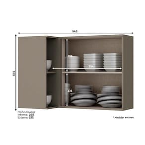 Armário Aéreo p/ Cozinha Canto Reto Connect c/ 1 Porta 95cm Duna/Cristal - Henn