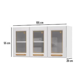 CARACTERÍSTICAS DE MÓVEIS Tipo de Estrutura do Móvel - 100% aço Tipo de Pintura - Eletrostática a Pó Tipo de Acabamento da Pintura - Alto Brilho Características de móveis - Armário Aéreo - Armário Triplo Tipo de puxador - ABS/PVC Quantidade de Portas - 3 Portas de Abrir Garantia - 3 meses
