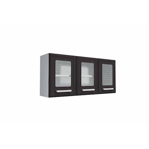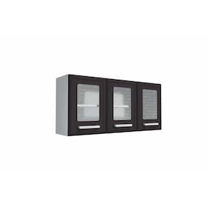 Armário Aéreo P/ Cozinha Gourmet 7009 3 Portas C/ Vidro 120cm Branco/preto - Bertolini