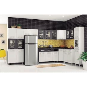 Armário Aéreo p/ Cozinha Gourmet 7009 3 Portas c/ Vidro 120cm Branco/Preto - Bertolini