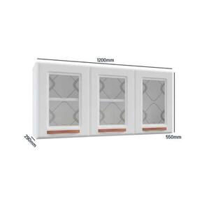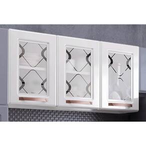 Armário Aéreo p/ Cozinha Mirage New 3 Portas c/ Vidro 120cm Branco/Preto - Telasul