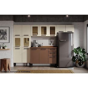 Armário Aéreo p/ Cozinha Origens 7009 3 Portas c/ Vidro 120cm Branco/Areia - Bertolini