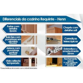 Material de Estrutura - Estrutura em MDF/MDP Tipo de Pintura - Pintura em UV (Ultravioleta) Tipo de Acabamento da Pintura - Semi Brilho Vantagens Extras dos Moveis de Cozinha - Vantagens dos Modulados