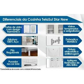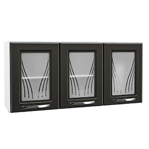 Armário Aéreo p/ Cozinha Star New c/ 3 Portas c/Vidro 120cm Branco/Preto - Telasul