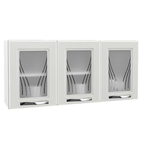 Armário Aéreo p/ Cozinha Star New c/ 3 Portas c/Vidro 120cm Branco - Telasul