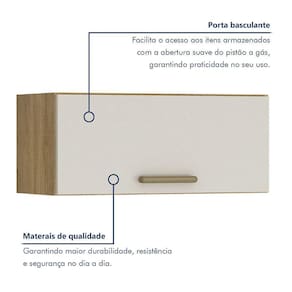 O Armario Aereo Sao Luis e a solucao ideal para quem procura praticidade e aproveitamento de espaco na cozinha. Com uma porta basculante, ele oferece espaco certo para alimentos e itens que precisam estar sempre a mao. Seu modelo compacto e moderno facilita a organizacao e elegancia ao ambiente. Ideal para cozinhas pequenas ou para quem precisa otimizar o espaco, o armario Sao Luisa e perfeito para deixar sua cozinha mais funcional e organizada.