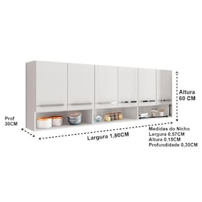 Armario Aereo para Cozinha 6 Portas Branco Suriname Bela Casa