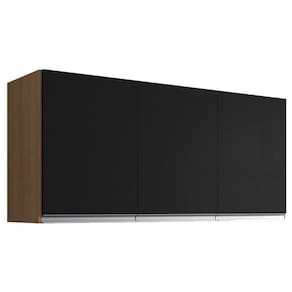 Armário Aéreo para Cozinha Andréia 3 Portas Amendoa Preto - AJL