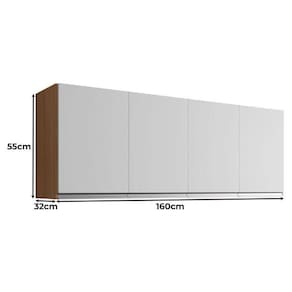 Armário Aéreo para Cozinha Andréia 4 Portas 160cm Amêndoa Branco - AJL