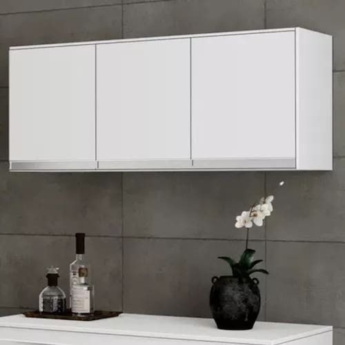 Armário Aereo 120cm para lavanderia 3 portas e prateleira Andreia Branco - AJL