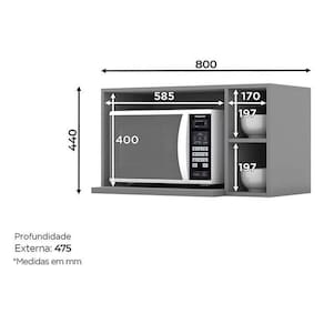 Armário Aéreo Para Micro-ondas Belize Cinza Henn
