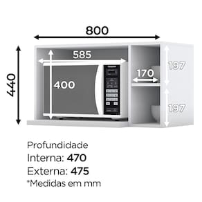 Armario Aereo Para Microondas MDF 80 cm Americana C557 Branco Henn