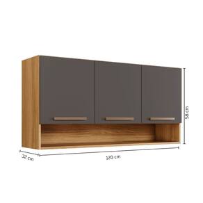 O Armário Aéreo 3 portas Plus é uma ótima alternativa para guardar mantimentos e utensílios domésticos. Possui 3 portas e um nicho, proporcionando maior comodidade, praticidade e estilo ao ambiente. Feito com materiais de alta qualidade, ele tem grande vida útil e beleza.\nEspecificações do Produto Montado: Altura: 58 cm Largura: 120 cm Profundidade: 32 cm Peso: 22,5 Kg\nDetalhes do Produto: Garantia: 3 Meses Material da estrutura: MDP/MDF Número de Portas: 03 Possui Nicho: Sim Necessita de montagem? Sim, sugerimos a contratação de algum profissional experiente de sua preferência. Recomendações de limpeza e manutenção: Limpar com pano umedecido, não aplicar produtos químicos.\nObservações: Não oferecemos serviço de montagem, mas todos os produtos possuem manual de montagem com o passo a passo. Recomendamos contratar um profissional de montagem. Pode existir alguma diferença de tonalidade entre a foto e o produto, devido ao tratamento de imagens e à calibração de cores do monitor.
