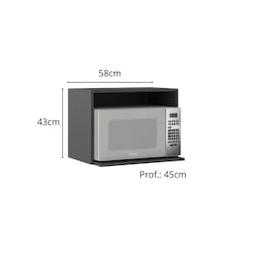 Armário Aéreo Nicho para Micro-ondas Poliman Etna: resistência, praticidade e elegância na sua cozinha! Projetado para acomodar micro-ondas ou forno dentro da medida limite de A.39cm x L.55cm x P.45cm, proporciona uma instalação funcional e segura no ambiente.